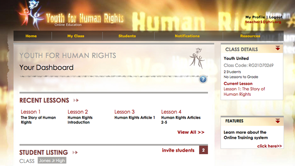 The Youth For Human Rights Online Education iPad application is designed for Junior, Secondary and High School students. It may be used as a full course or as a supplemental resource within another curriculum.